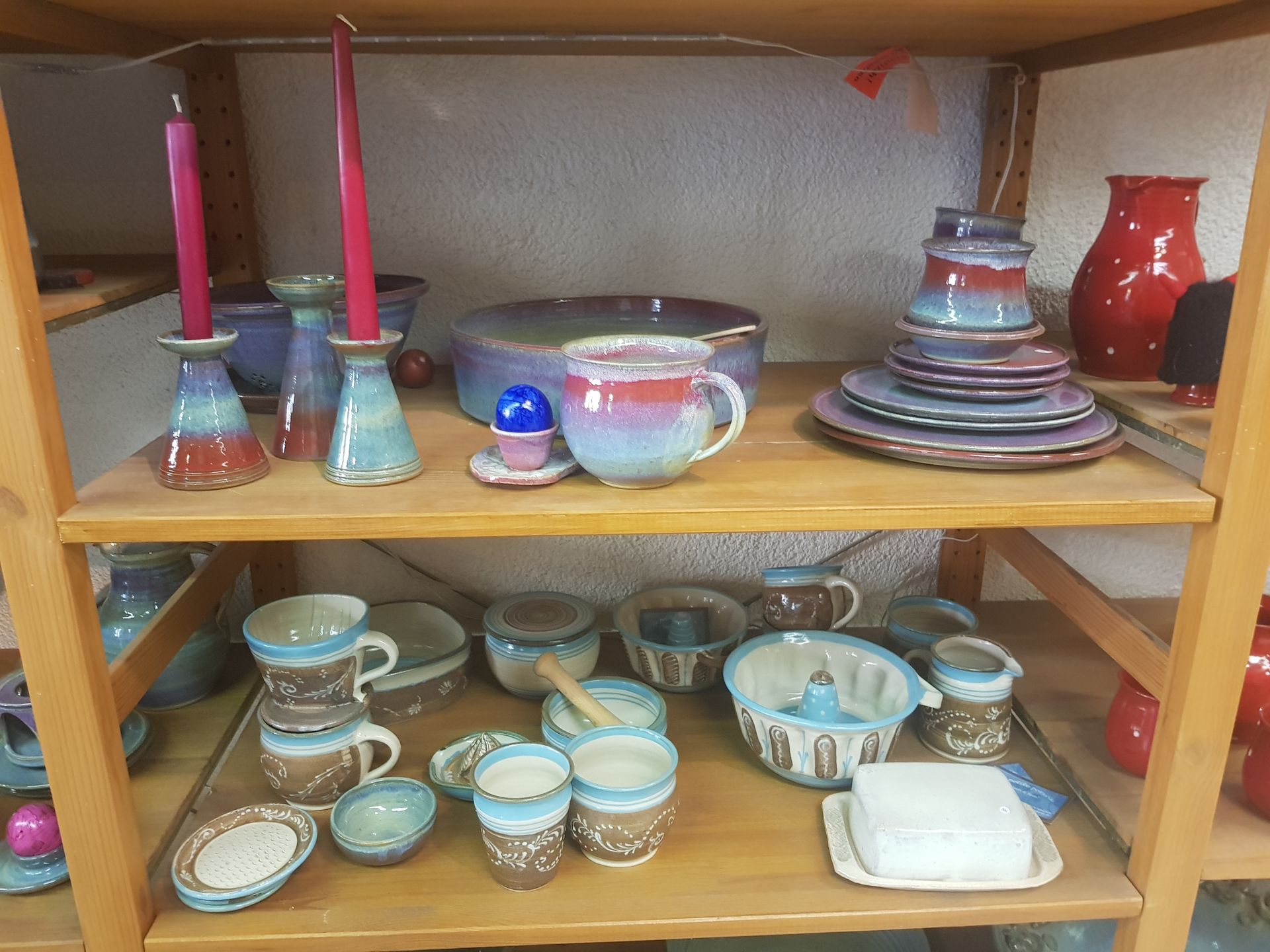 Alle Formen, die ich hier vorstelle, sind in den verschiedenen Farben erhältlich - z. B. "marmoriert" oder "türkis" oder "geflammt mit Spots". Farbwünsche bitte bei der Bestellung mit angeben. Im Zweifelsfalle genügt ein kurzer Anruf, um Einzelheiten zu klären. Die Lieferzeit beträgt zwischen 3 und 5 Wochen, manchmal geht es schneller oder es kann ein bisschen länger dauern, dann sage ich Bescheid.